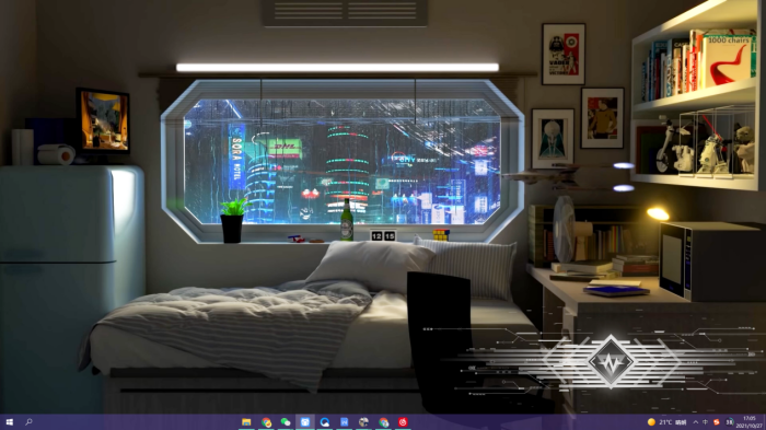 壁纸是在睡觉的粉发萌妹,所以把任务栏也改成了和壁纸配色相同的粉色,强迫症患者感到非常舒适。