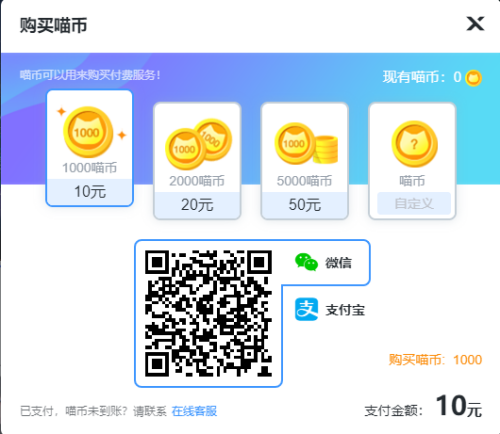 2.喵币充值