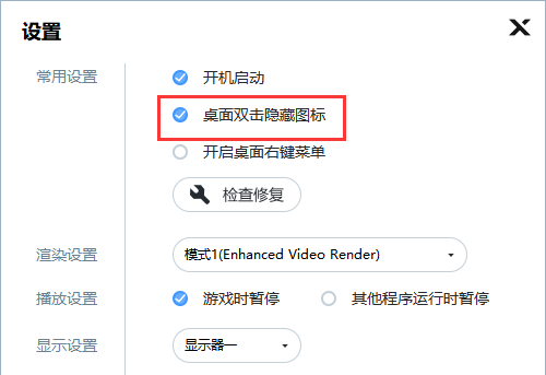 1.检查下设置里有没有勾选【双击隐藏图标】