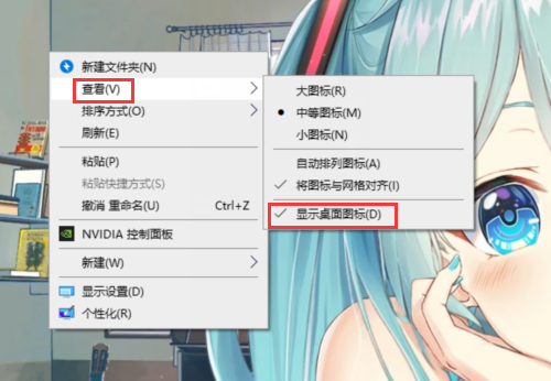 2.单击鼠标右键,看是否勾选【显示桌面图标】