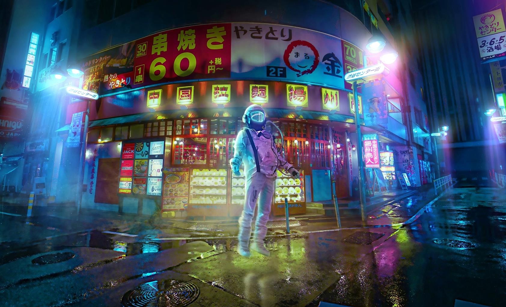 赛博朋克漂浮太空人